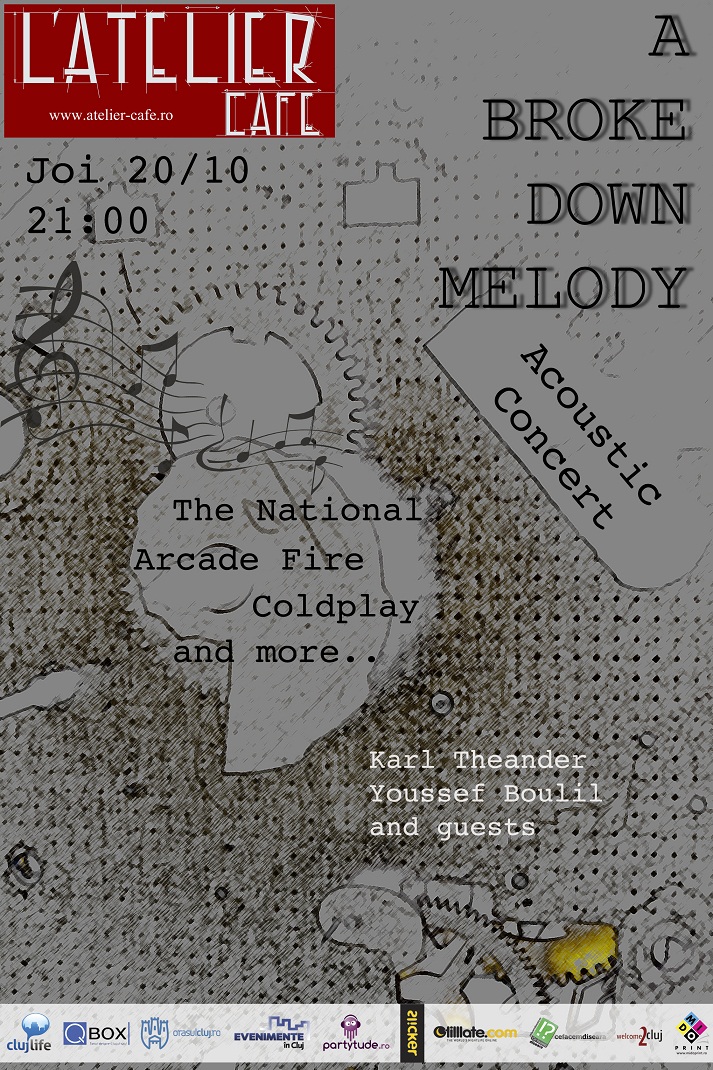 Joi, 20 octombrie, începând cu ora 21:00, L’Atelier Cafe te invită la un concert acustic de coveruri (The National, Arcade Fire, Coldplay etc). Vor interpreta Karl Theander, Youssef Boulil şi invitaţii lor.