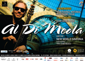 Pe data de 1 şi 2 Noiembrie, Diesel Events îl va aduce pe scena Teatrului Naţional din Cluj-Napoca pe unul dintre cei mai buni chitarişti din întreaga lume, Al Di Meola, împreună cu grupul său New World Sinfonia.