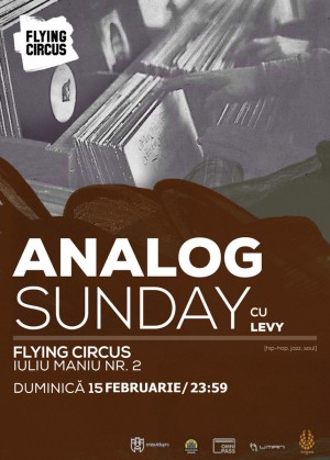 Duminică, 7 Februarie 2015, începând cu ora 23:59, Flying Circus Pub Cluj-Napoca te invită la petrecerea intitulată Analog Sunday alături de Levy.
