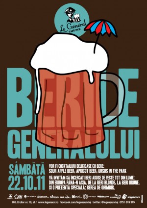 Sâmbătă, 22 Octombrie 2011, începând cu ora 21:00, Le Général Cluj-Napoca îți prezintă niște cocktailuri delicioase cu bere: Sour Apple Beer, Apricot Beer, Ursus in the Park (forest berry).