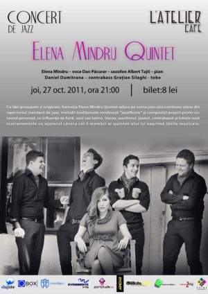 Joi, 27 Octombrie, începând cu ora 21:00, L’Atelier Cafe te invită la un concert Elena Mîndru Quintet.