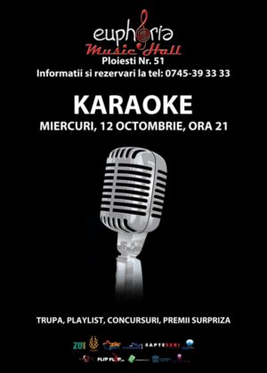 Karaoke Data12 oct. mie 21:00LocEuphoria Music Hall Cluj-NapocaComentarii0Trackbacks0 Miercuri, 12 Octombrie, începând cu ora 21:00, Euphoria Music Hall te invită la karaoke. Tweet
