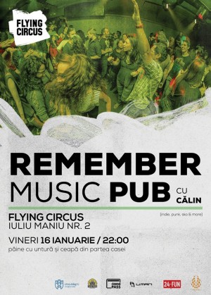 Vineri, 16 Ianuarie 2015, începând cu ora 22:00, Flying Circus Pub Cluj-Napoca te invită la petrecerea intitulată Remember Music Pub alături de Călin.