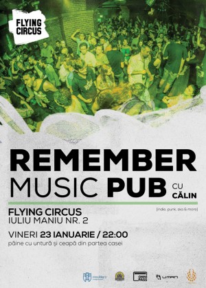 Vineri, 23 Ianuarie 2015, începând cu ora 22:00, Flying Circus Pub Cluj-Napoca te invită la petrecerea intitulată Remember Music Pub alături de Călin.