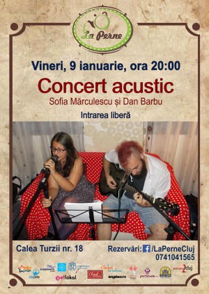 Sofia Mărculescu și Dan Barbu Data09 ian. vin 20:00AccessgratuitLocLa Perne Cluj-NapocaComentarii0Trackbacks0 Vineri, 9 Ianuarie 2015, începând cu ora 20:00, La Perne Cluj-Napoca te invită la un concert acustic susținut de Sofia Mărculescu și Dan Barbu. Tweet