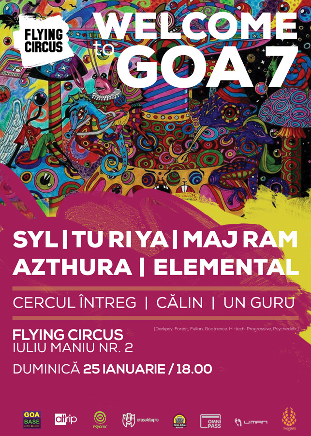 Duminică, 25 Ianuarie 2015, începând cu ora 22:00, Flying Circus Pub Cluj-Napoca te invită la petrecerea intitulată Welcome to Goa 7.